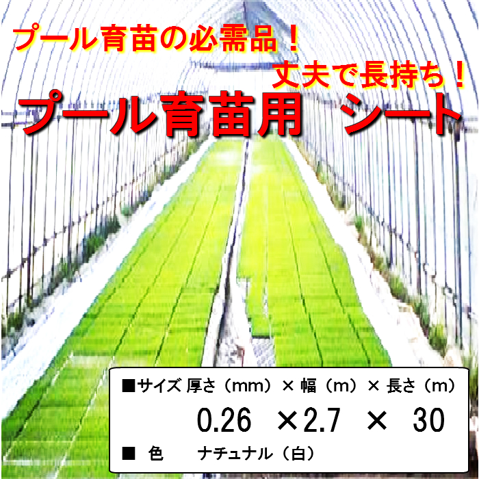 【プール育苗用シート 厚さ0.26mm×幅2.7m×長さ30m】 プール育苗の必需品!丈夫で長持ち!「プール育苗」でラクして健苗!! 潅水・温度管理の手間が減る!! ■サ イ ズ:厚さ0.26mm×幅2.7m×長さ30m ※実店舗と在庫共有のため、在庫切れで販売できない場合がございます。ご迷惑おかけしますが予めご了承ください。