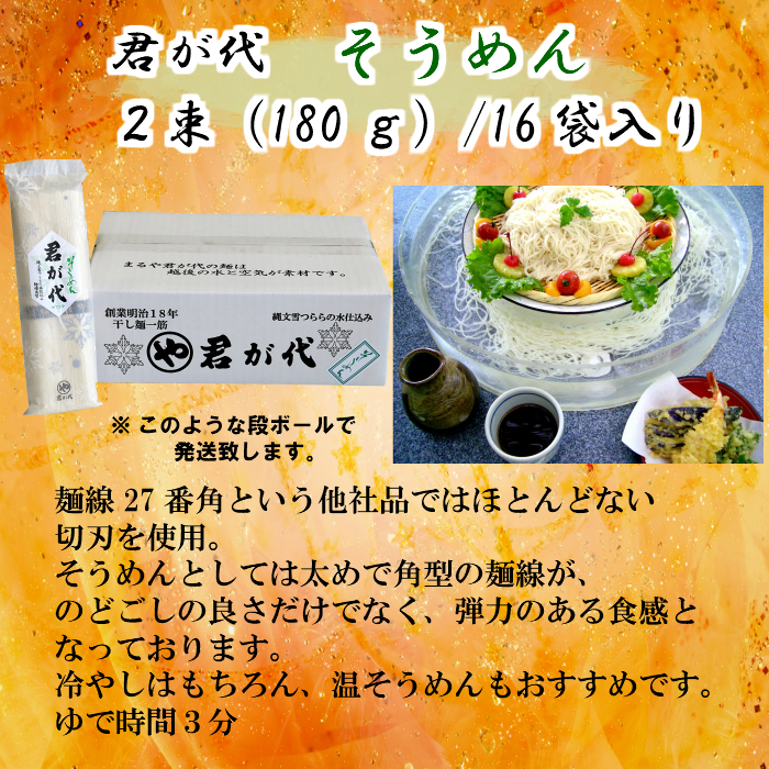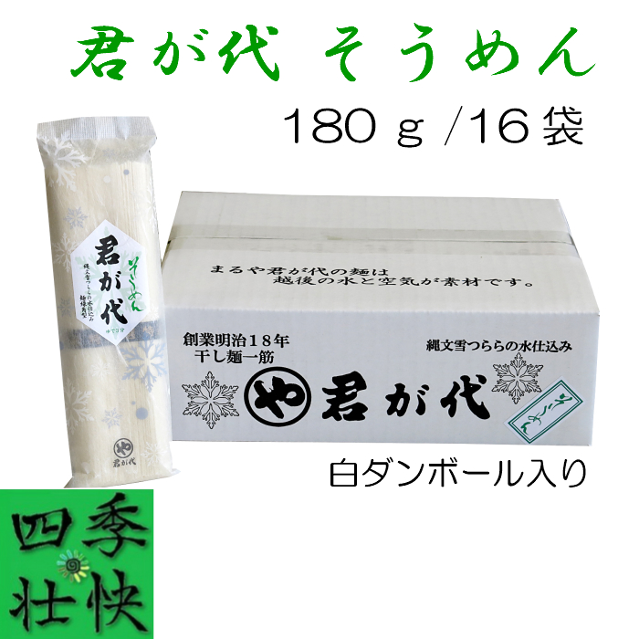 【送料無料】【メーカー直送品】君が代 そうめん180g/16袋入り