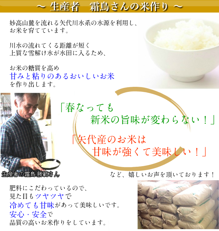 また、新潟県妙高市矢代地区は、新潟県のお米の産地・魚沼地方に地域環境が似ていると言われていて、その最適な環境が美味しいお米の一端をなしています。