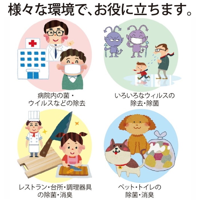ウイルスの繁殖を防ぎ、除菌。この「ウイルス不活性化」がウイルス対策にとって重要です。