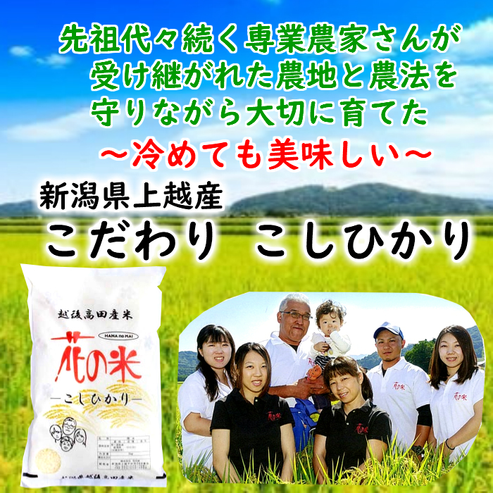 新潟県産こしひかりです。冷めてもおいしく食べたられるので、