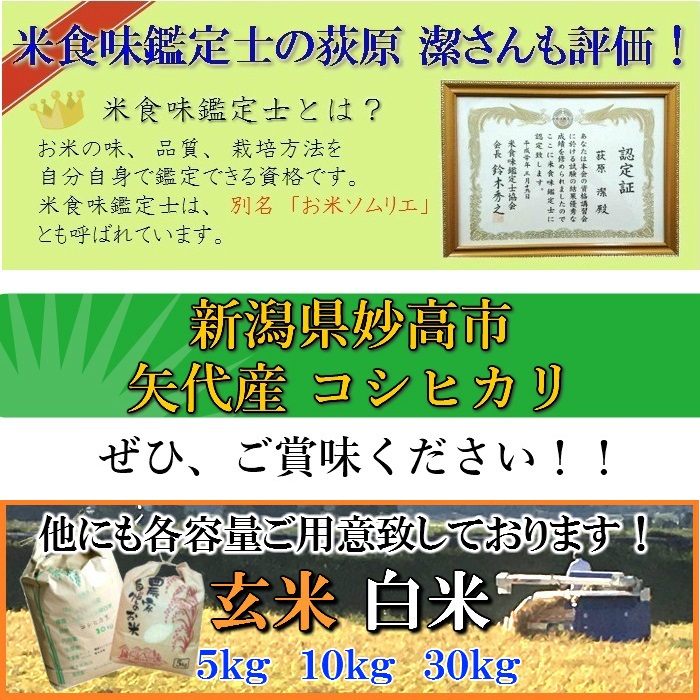 ※※※新潟県妙高市矢代産コシヒカリ<令和1年度新米>の販売は終了致しました。