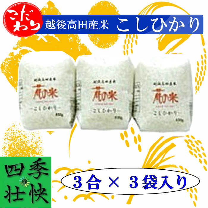 【送料無料】 令和2年度 越後高田産米 こだわりこしひかり 3合×3個入り